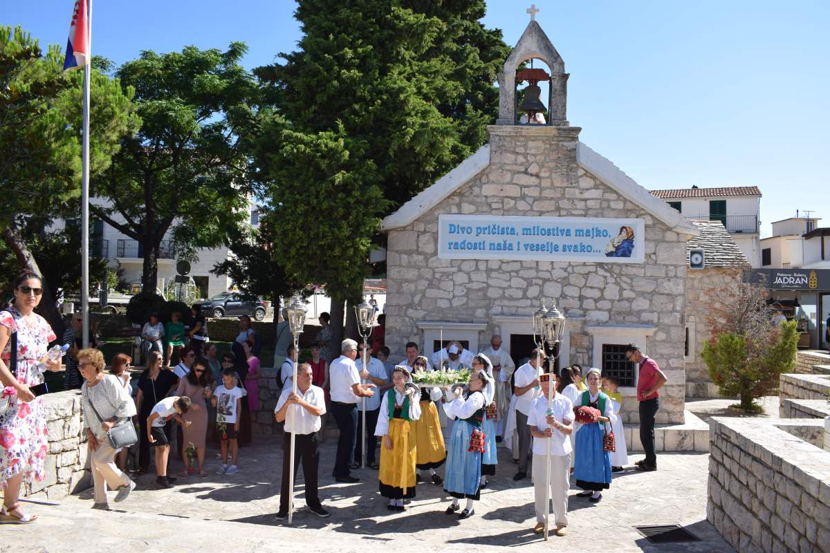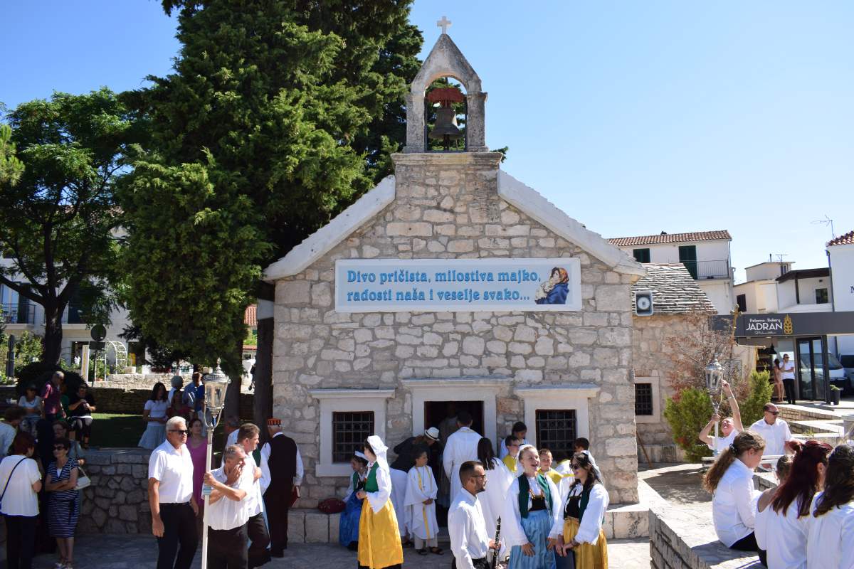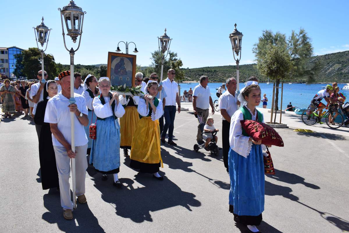 Gospinu priliku, od njene kapelice u Portu do crkve sv. Roka, nosile su djevojke u primoštenskim narodnim nošnjama.