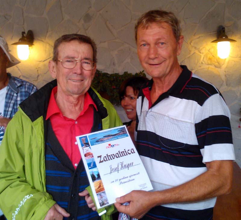 Prije točno 30 godina Josef Kasper je po prvi put došao u Primošten kao gost te se rodila ljubav koja traje do današnjeg dana. Tom prilikom, inicijativom Turističke zajednice Primošten i konobe Torkul, Josefu je dodijeljena zahvalnica i prigodni pokloni.