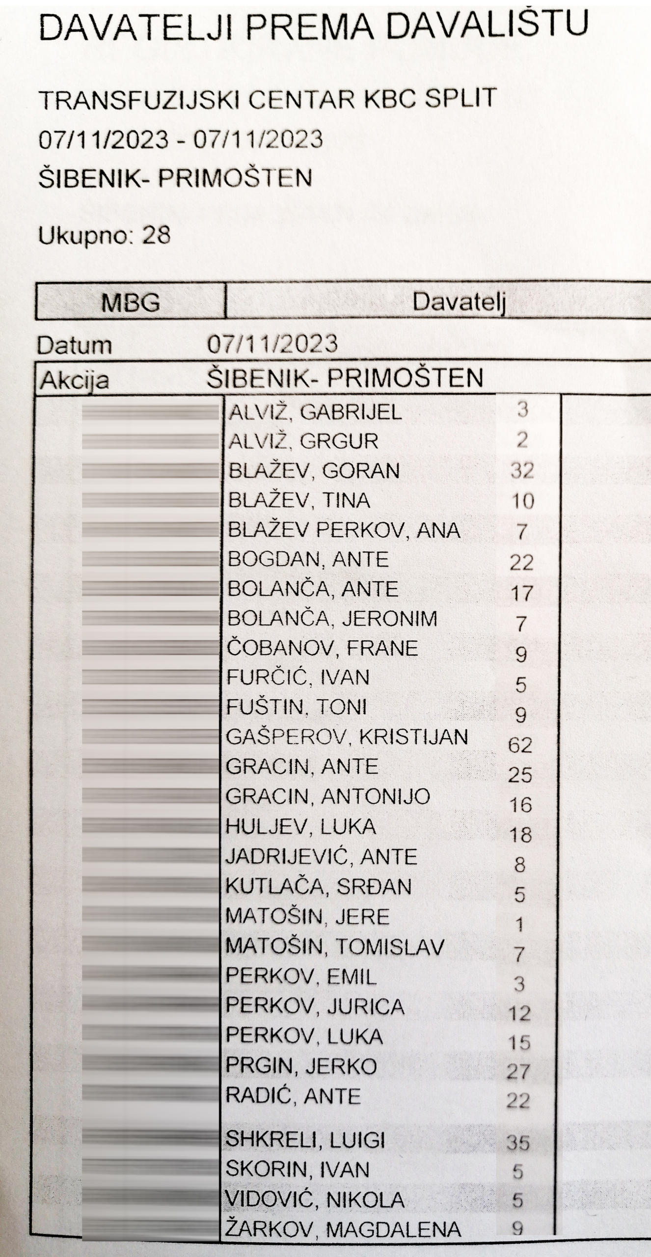 32 darivatelja pristupilo je akciji, s time da je njih 28 doniralo krv. Dobili smo i jednog novog darivatelja – Jeru Matošina, a po prvi puta su nas posjetili i članovi novoosnovanog motociklističkog kluba “Maranatha” iz Primoštena! Spomenimo i Kristijana Gašperova koji je do sada zabilježio 62 darivanja!! Zahvaljujemo se, naravno, i svima ostalima koji su se odazvali ovoj humanitarnoj akciji.
