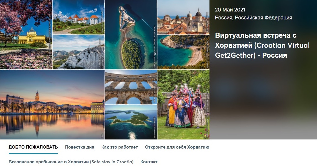 Danas se održava i Croatian Virtual Get2Gether prezentacija namijenjena ruskom, ukrajinskom i bjeloruskom tržištu, odnosno predstavnicima turoperatora i turističkih agencija s navedenih tržišta. Na prezentaciju se prijavilo 116 sudionika, a direktor Predstavništva HTZ-a u Rusiji Rajko Ružička tom će prilikom, između ostalog, predstaviti i nacionalnu oznaku Safe Stay in Croatia, sigurnosne protokole koji se provode za siguran boravak u Hrvatskoj te najaviti provođenje kampanje „Trust me, I’ve been there“ na ruskom tržištu.