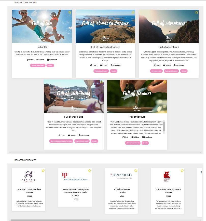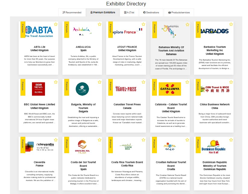 Uz Hrvatsku turističku zajednicu kao glavnog izlagača, suizlagači koji će svoju vidljivost osigurati kroz virtualni štand HTZ-a su Adriatic Luxury Hotels, Udruženje malih i obiteljskih hotela (OMH), Croatia Airlines, Turistička zajednica grada Dubrovnika, Turistička zajednica grada Zagreba, Maistra Hospitality Group, Valamar Riviera d.d., Perfecta Travel, Plitvička jezera i Uniline DM.
