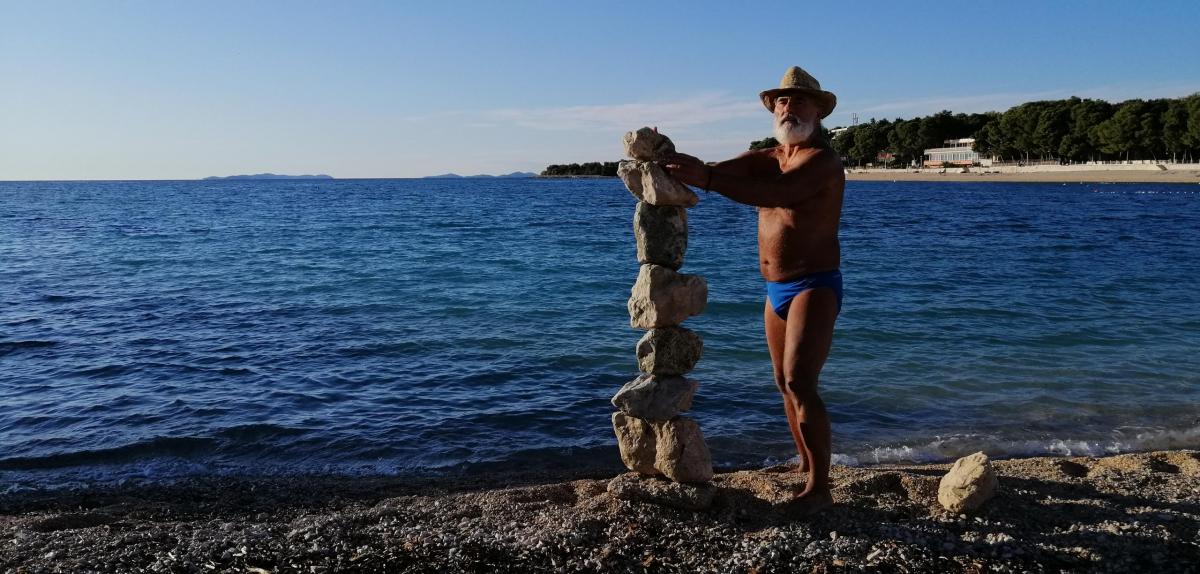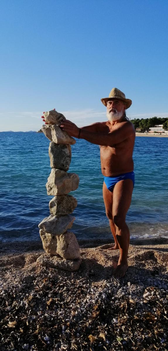 I u Primoštenu ste vjerovatno prethodnih godina primjetili na plažama i stijenama naslagano kamenje koje čine zanimljive skulpture…..e, pa te zanimljive radove, u koje treba uložiti puno strpljenja i koncentracije slaže osebujni gospodin Mladen Janković Deny. Upravo smo ovog gospodina prije nekoliko dana susreli na plaži u Maloj Raduči kako na listopadskom suncu uživa u strpljivom slaganju kamenja jedno na drugo u savršenu ravnotežu. Pogledajte u nastavku neke njegove radove.