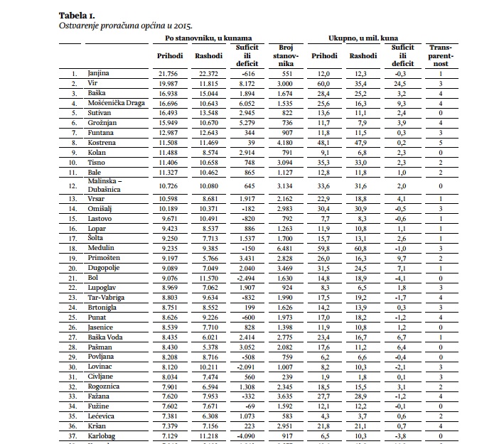 Općina Civljane koja ima samo 239 stanovnika na 31. mjestu s 8.034 kuna po stanovniku, a odmah iza je Rogoznica s 7.901 kuna.