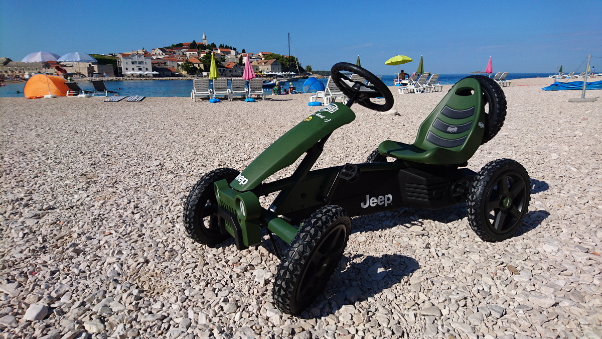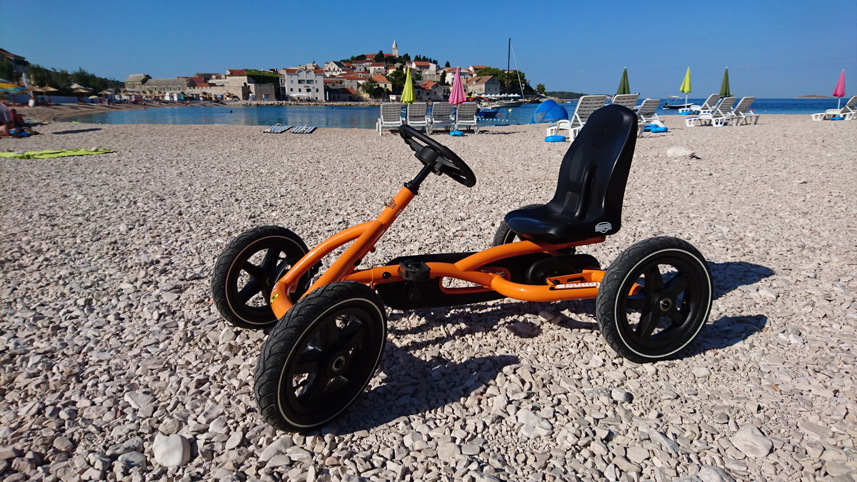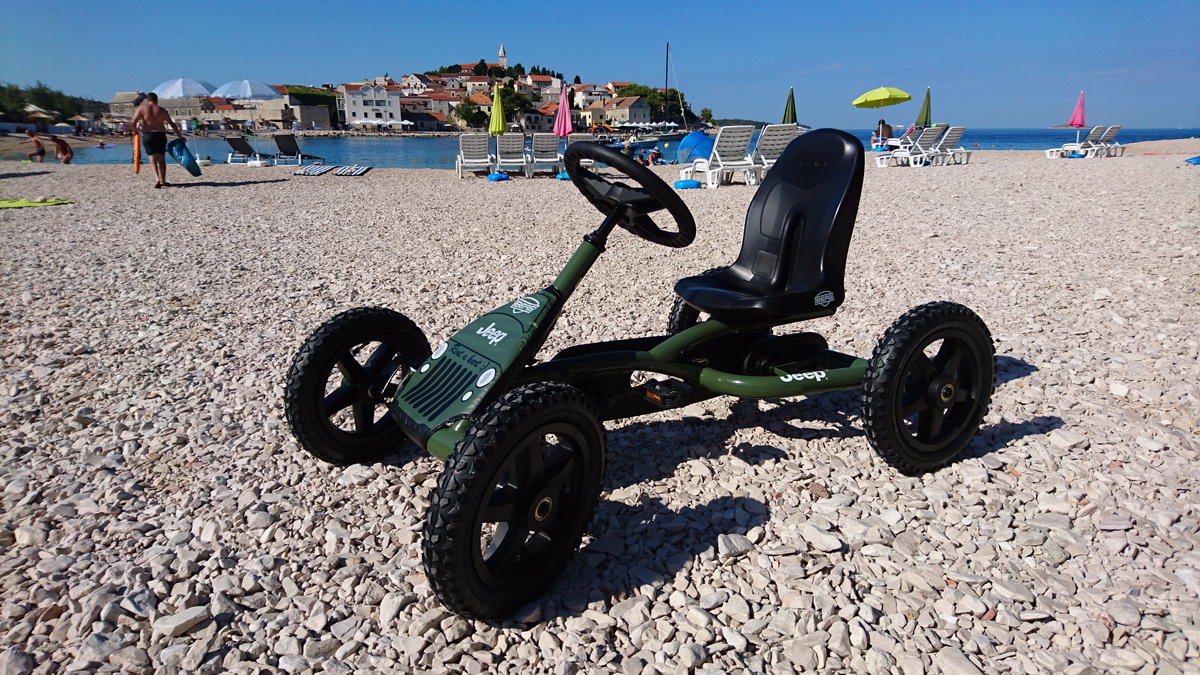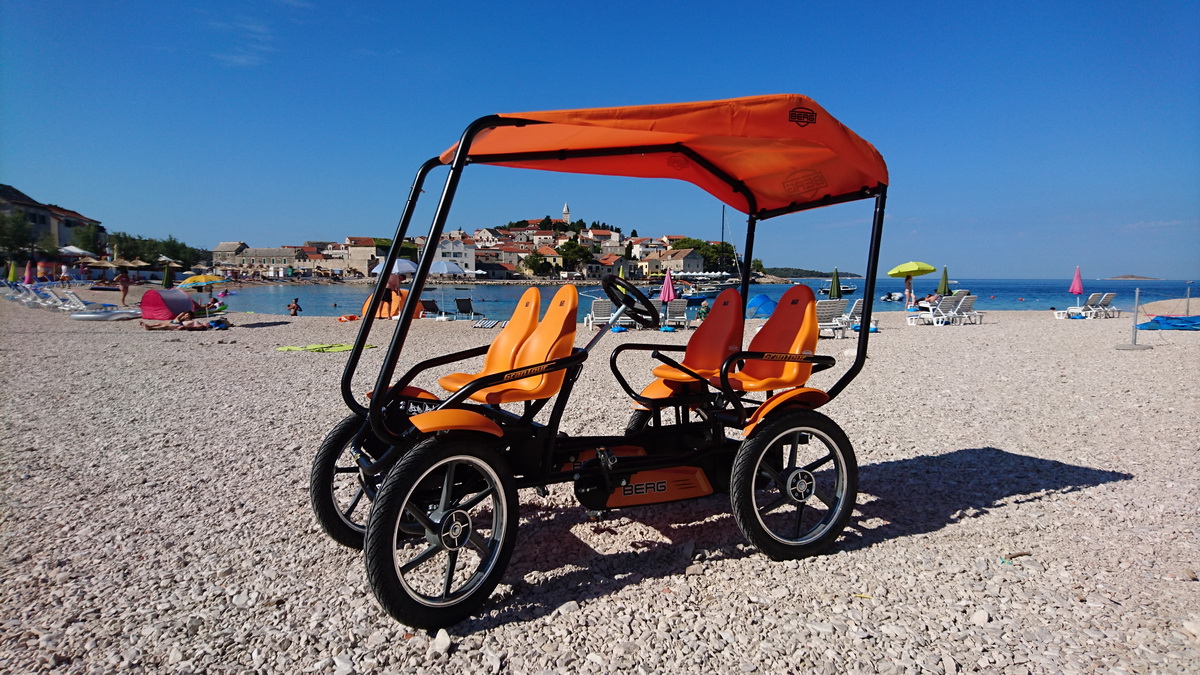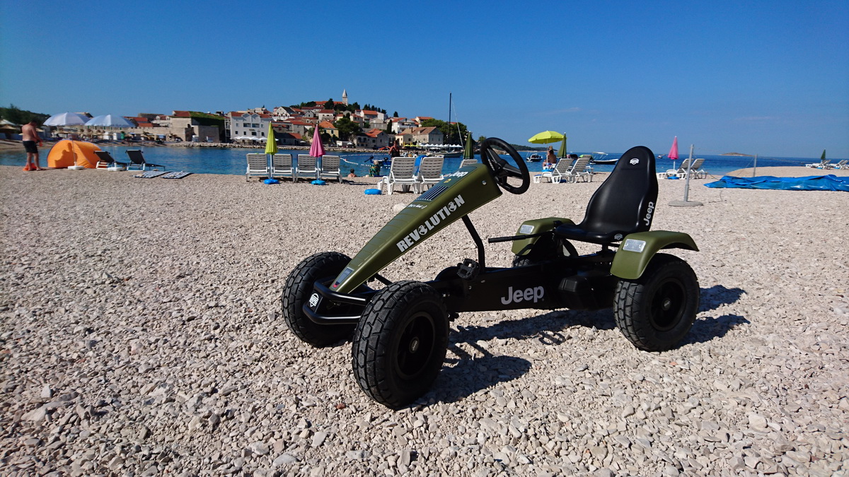 Primošten je od ovog tjedna bogatiji za još jednu ponudu. Na plaži Mala Raduča u rental centru iBike, osim velikog izbora bicikli, sada možete iznajmiti i karting na pedale. Radi se o jako kvalitetnim igračkama nizozemskog proizvođača Berg. Za sada je u ponudi osnovni model “Buddy” prilagođen djeci od 3 – 5 godina. Choppy za djecu od 3 – 6, zatim modeli Jeep za djecu 3 – 5 te 5 – 8 godina starosti. Za stariju djecu te odrasle tu je omiljeni model Jeep revolution, a u ponudi imamo i dva obiteljska modela Gran Tour, koji su pogodni za obitelj s dvoje djece. Osim najma sve modele BERG TOYS igračaka kod nas možete i kupiti.