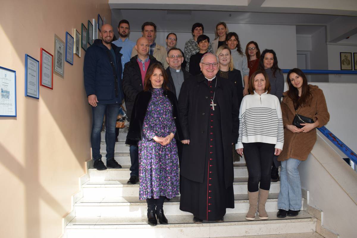 Nakon svečanog dočeka Oca biskupa, dolaska u župnu kuću potom u župnu crkvu, molitve i odrješenja ispred crkve za pokojne … u pratnji župnika, biskup je posjetio učenike i djelatnike OŠ Primošten.