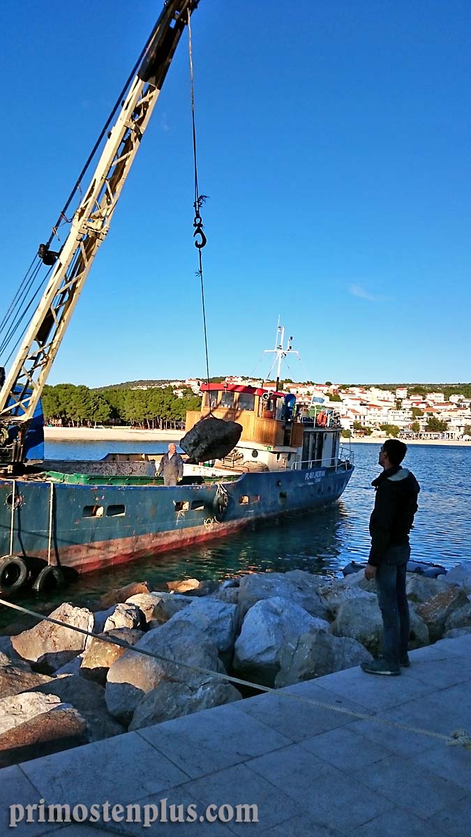 Da se ovakvi slučajevi ne bi više događali, Plavi Jadran strpljivo namješta stijenu po stijenu svojom dizalicom koja može nositi i do 4 tone tereta.
