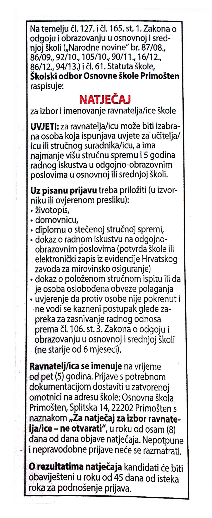 Natječaj je izašao danas u tiskanom izdanju dnevne novine ” 24 sata” pa ako ispunjavate uvjete, prijavite se!