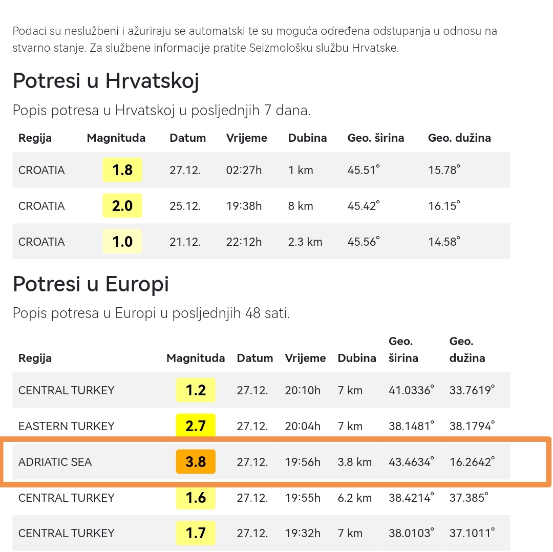 Večeras u 19.56 osjetio se potres na našem području, izmjerena je magnituda od 3.8 po Richteru